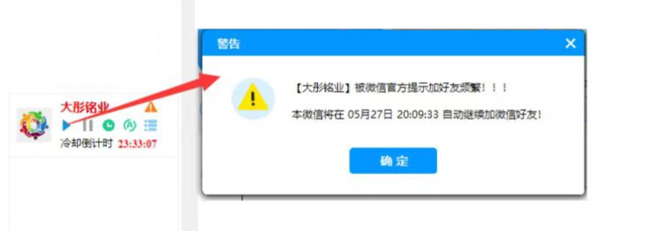 以上 3 种情况,无论是触发哪一种,软件都会进入24小时倒计时,微信加好友‘开始’按钮变成灰色,软件会立即自动开启24小时的冷却倒计时,自动暂停相关操作,倒计时结束后软件又会自动启动,无需人工参与。