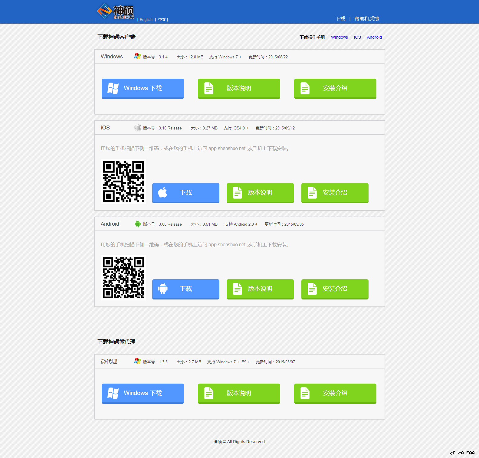 手机版:1、可以通过 http://app.shenshuo.net 进行下载。 2、通过二维码扫描安装 。