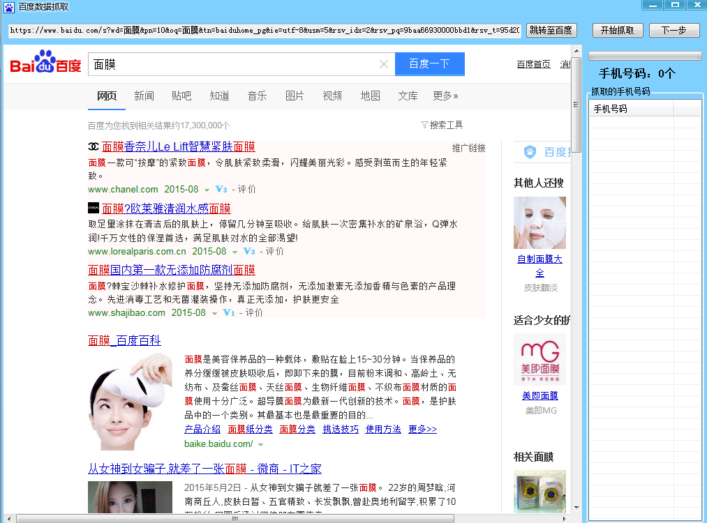 4、网站抓取:通过输入产品关键词,在互联网上快速搜索并分析产品信息,将搜集到的号码排列出来,快速完成抓取目标客户!