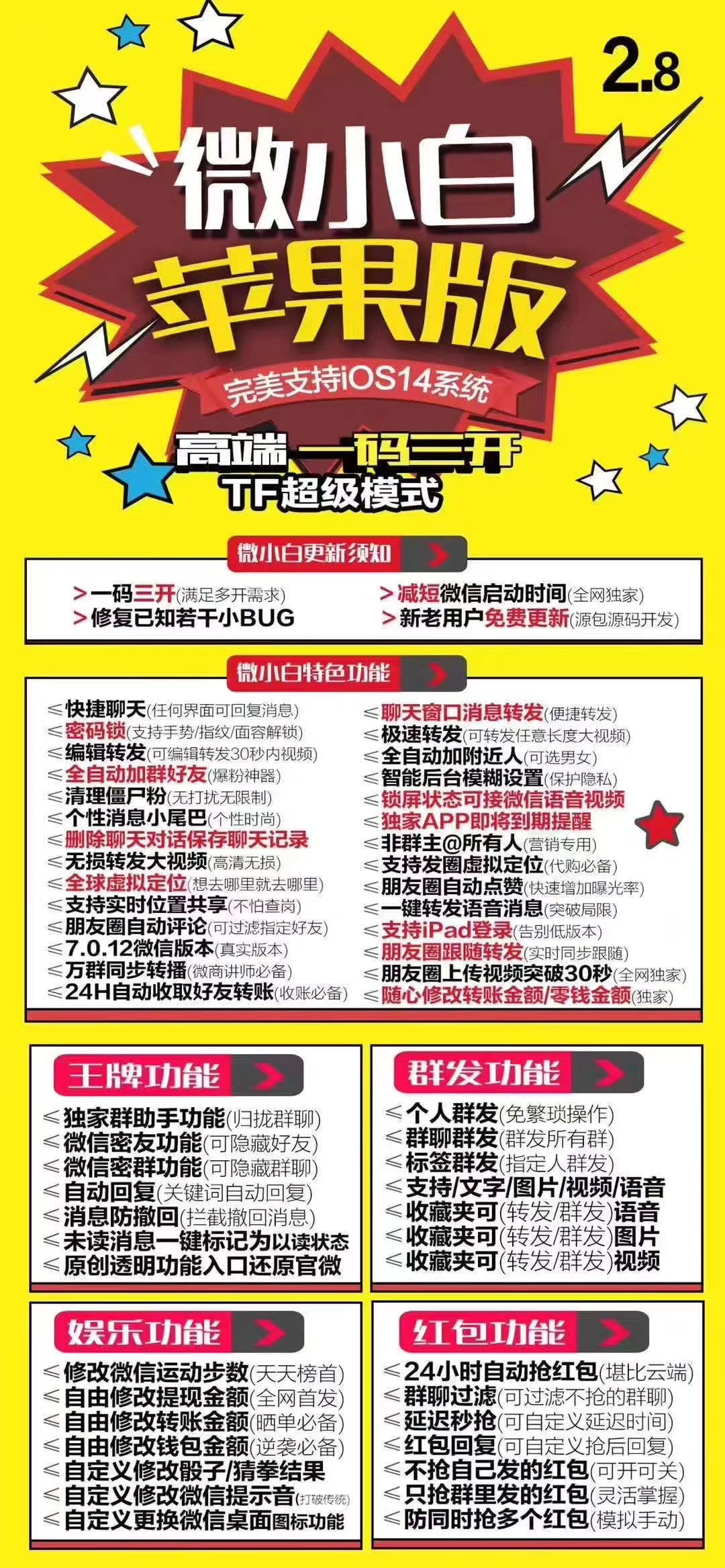 特别注意! ! ! 激活码只负责激活,激活码没问题不退不换,个人体验和功能是否可用不在售后范围之内,我们只卖正确的激活码。所有软件均是第三方研发,没有100%防封,风险自担,所有软件不建议新号使用,不建议频繁使用功能