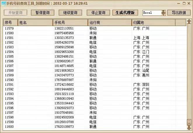 下单前务必咨询网站客服功能:https://www.123pan.cn/s/BzxtVv-6cZY.html主要用于批量查询手机号归属地、运营商信息右击导入、清空、复制要筛选的数据,两种导入方式开始查询使用多线程查询,速度忒快查询过程中随时可以暂停、继续、停止导出支持三种方式:Excel、CSV、txt5.一键生成代理版,无联系方式
