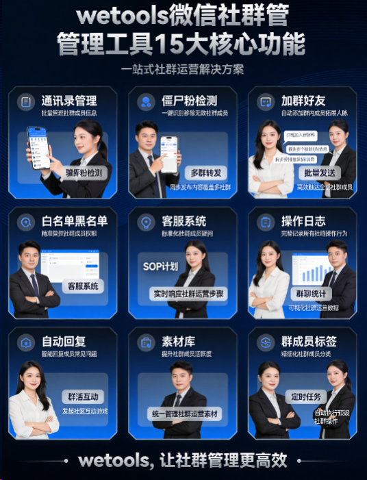 wetools作为一款专业的微信社群管理工具,以其"选择我们就对了"的产品理念和"无忧售后、防封稳定不卡不掉"的品质承诺,为社群运营者提供了完整的自动化解决方案。本文将深入解析wetools的15大核心功能,帮助您全面了解这款工具的强大能力。
