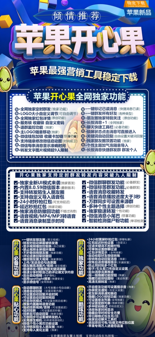 苹果TF开心果官网-微信分身-转发朋友圈-跟随转发-同步转发-自动抢红包-自动收款-24小时点赞-自动防撤回-万群同步